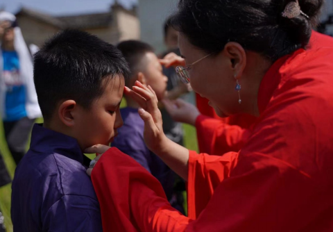“中华古礼”博士团为20名即将进入小学的孩子举办了隆重的“开笔礼”。仪式由成人在线