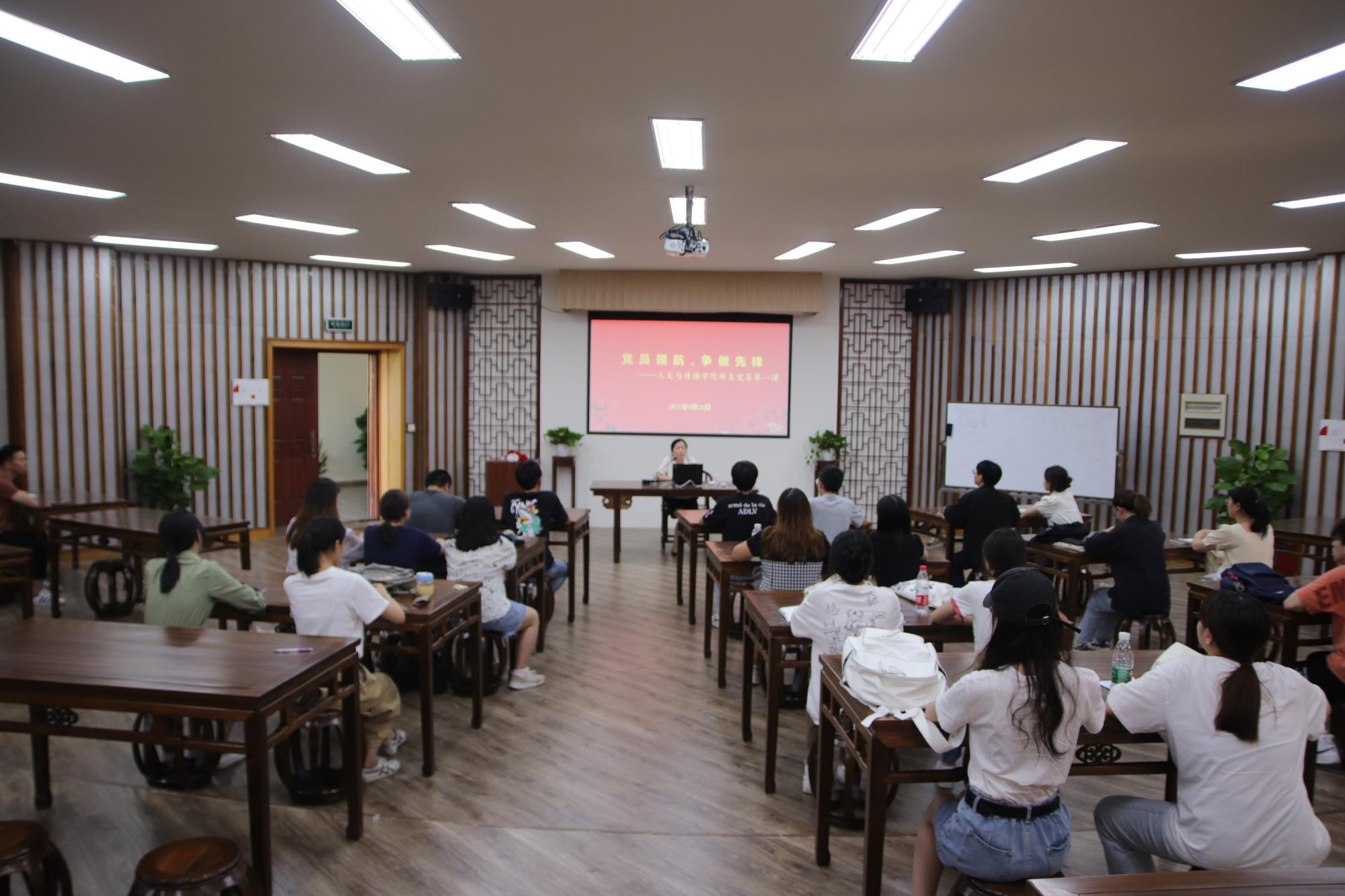 于问津书院开展新生党员开学第一课,学院党委书记高燕,研究生支部和本科生支部新生党员参加此次活动。