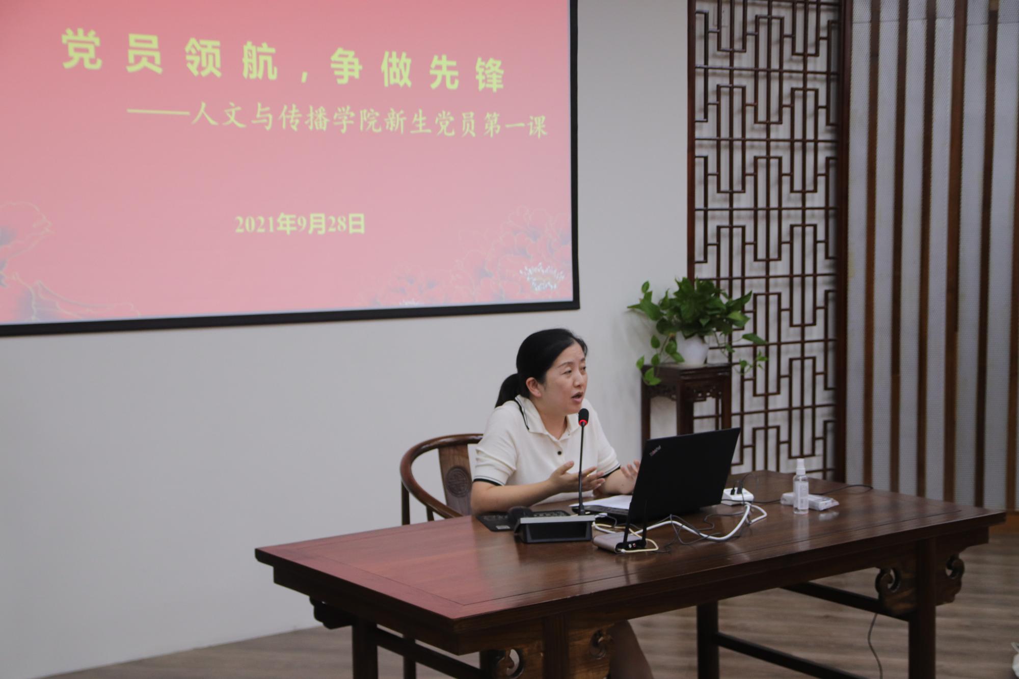 高燕以《党员领航,争做先锋》为主题为全体新生党员讲授党课。她结合百年党史,帮助同学们再一次深刻认识了党的性质、宗旨和目标。以革命先辈和成人在线