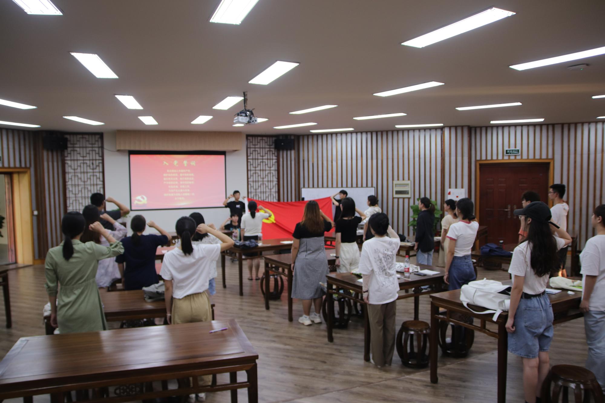 党课结束后,全体党员在高燕书记的带领下致敬党旗,重温了入党誓词。星星之火,可以燎原。激情昂扬的宣誓声里也跳动着一颗颗干劲与韧劲同样十足的年轻的心。祝愿新生党员们在未来能不断提升自我,突破自我,更能持续朝外辐射出优秀党员的特质,为组织建设积极助力,为学院建设作出更大贡献。