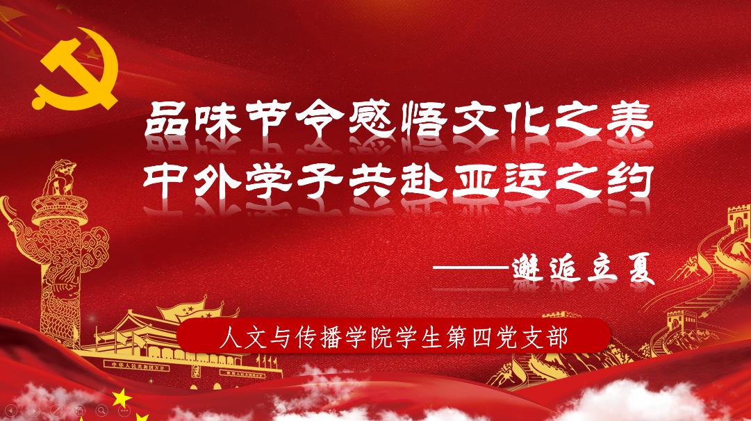 作为研究生党员及党的后备力量,我们应将传播中华优秀传统文化作为肩上己任。本次“品味节令感悟文化之美·中外学子共赴亚运之约—邂逅立夏”党建品牌活动依托传统节气文化和成人在线