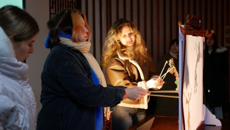 皮影戏作为我国的非物质文化遗产,是一种古老的中国民间传统艺术,集工艺美术、文学作品、音乐创作、舞台表演等各种元素于一体。通过现场展示,留学生们了解并体验了《哪吒闹海》《年的故事》和《武松打虎》三部经典皮影剧目,将丰富多彩、制作精美的皮影人物舞动起来,在皮影的翻飞腾挪中,在传统优美的唱腔中,每位学生都融入到绚烂的皮影艺术中,现场气氛热烈。