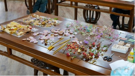 活动以华传统纸文化与皮影戏文化传播为主要内容。花草纸由古法造纸演变而来,是非遗文化的有效传承。留学生们挑选自己心仪的花草叶铺在纸浆上,在师生党员的帮助下,创作出一幅幅独特的花草纸。这一瞬间,历久弥新的造纸技艺,在传播者与体验者的手中完成了跨越千年的传承与创新。