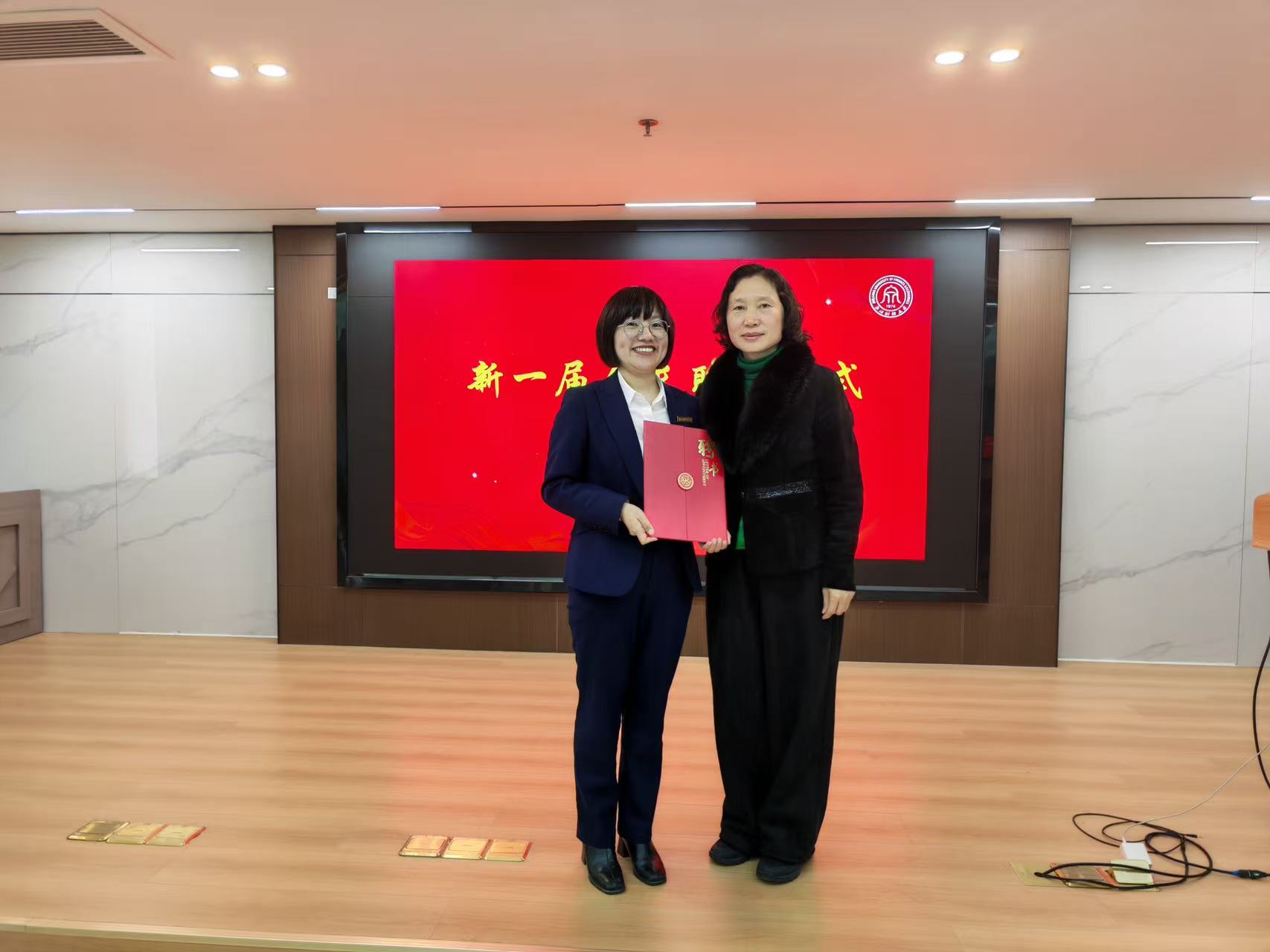 会议审议并通过新一届理事会成员名单。罗金艳,韦晓蓓为新一届理事会成员颁发聘书。
