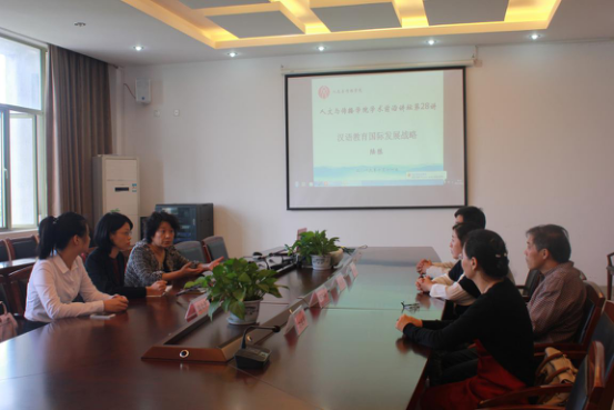 汉语国际教育专业的实践基地。讲座主题为“中文教育国际发展战略”,参加者主要是人文与传播学院汉语国际教育专业大一到大三的学生,讲座由成人在线