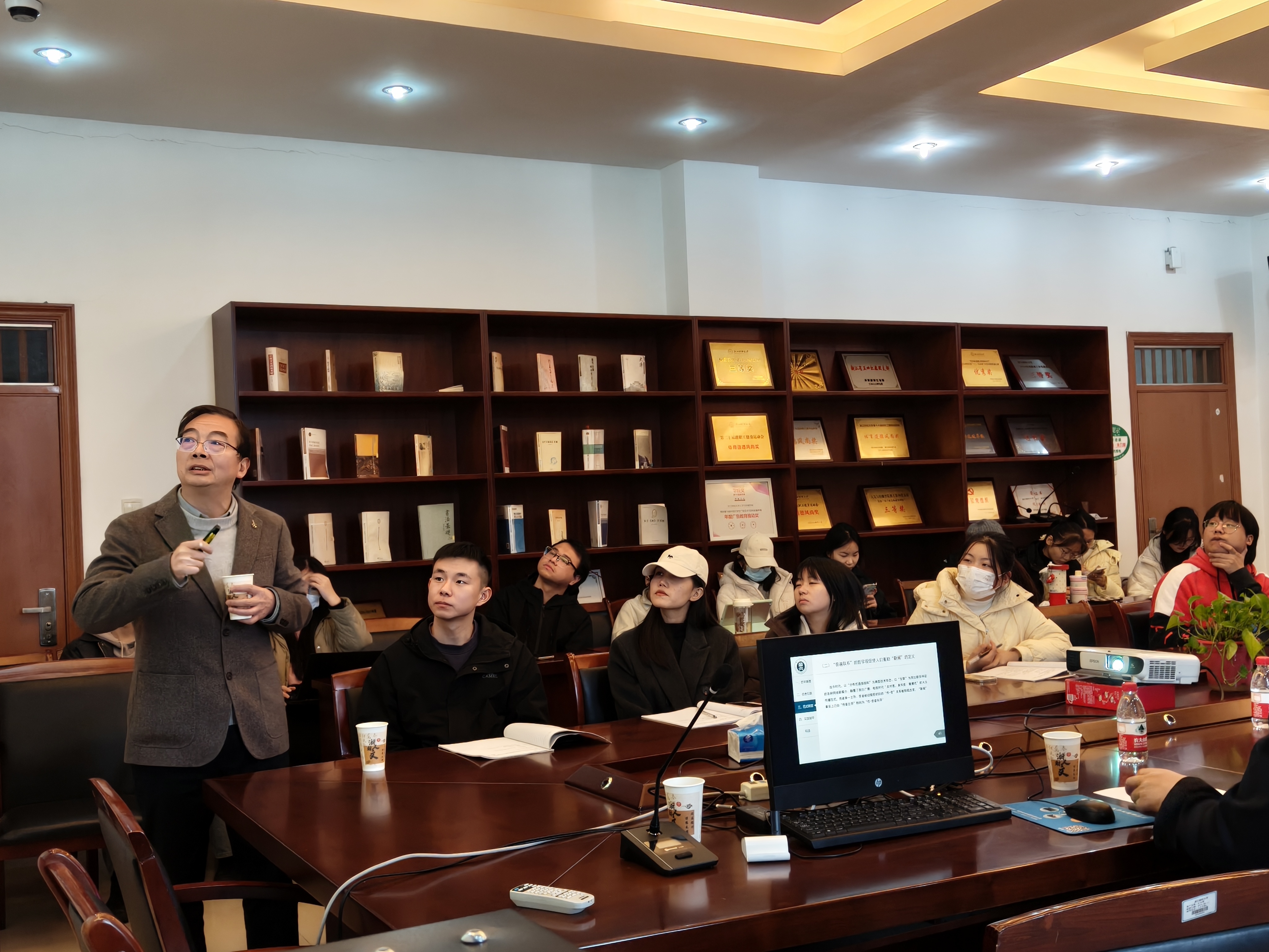 胡文财副教授主持讲座,2023级、2024级新闻与传播专业全体硕士生及学院教师到场聆听、学习。