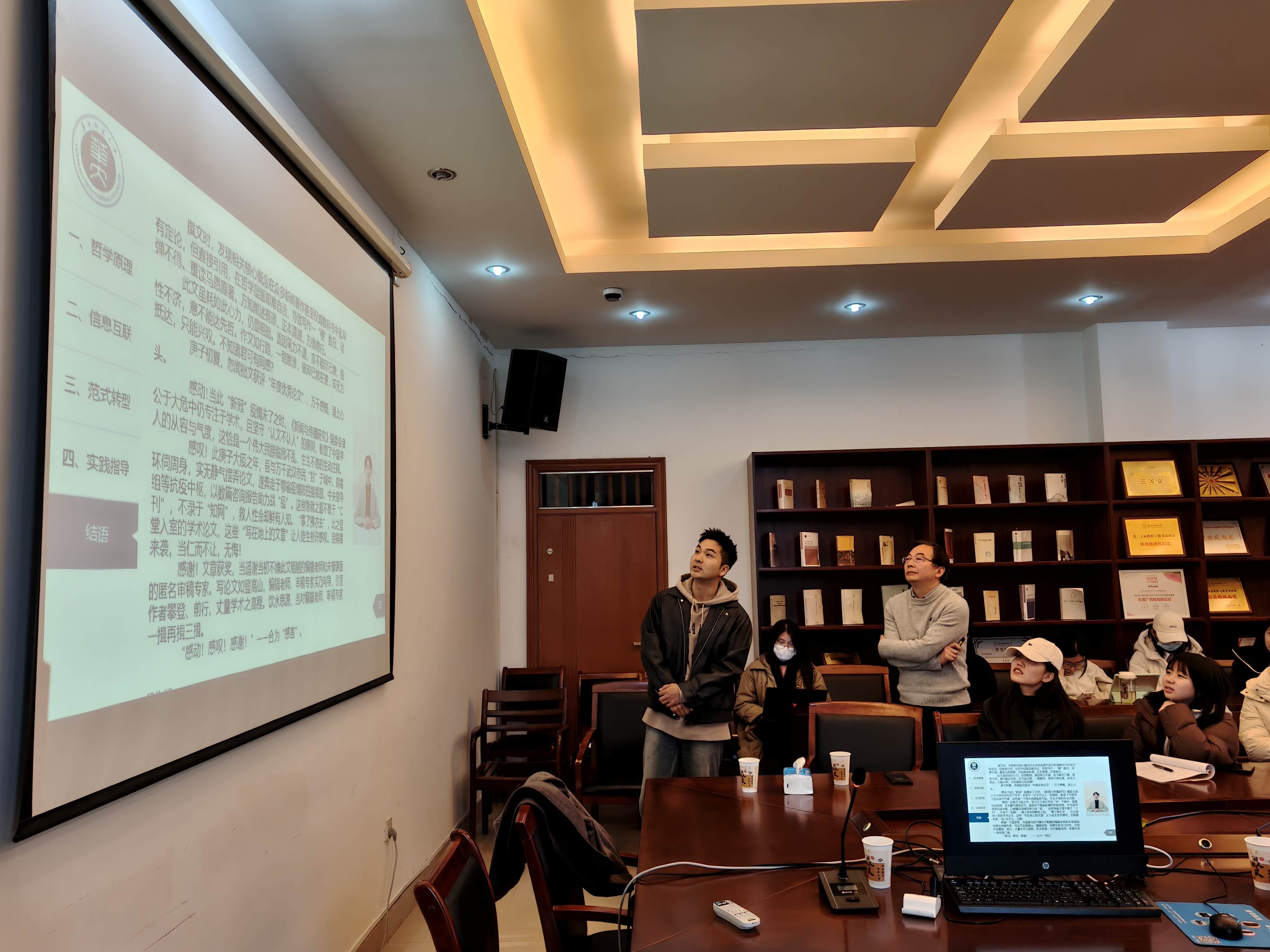 学生就新闻价值的重定义对于从业者的实践指导、马克思主义新闻观对研究实践的启示、“普遍联系”对人工智能理论和实践上带来的变化、“普遍联系”的研究视角等提出问题,关于学生们的提问,喻发胜教授也耐心倾听,并一一细节做了解答。