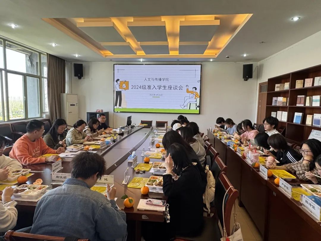 在7-404会议室举办了2024级准入学生餐叙活动。本次活动由学院党委副书记袁慧兰主持,副院长林香娥,汉语言文学专业教师代表郁冲聪、新传专业教师代表王彬,教学秘书林泽宇,2024级带班辅导员万秋萌、徐沛村,以及21名准入学生参会。