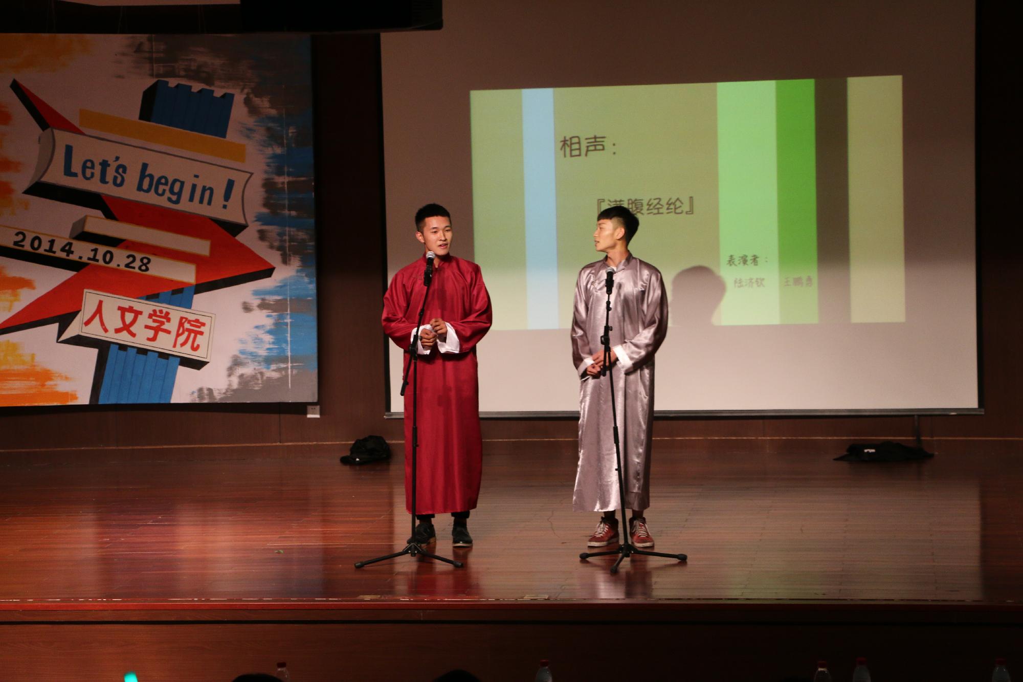 本场晚会缓缓落幕,一场别出心裁的迎新晚会,让师生们都融入其中享受晚会带来的美妙享受。今昔,人文子,倾尽青春,山水同程,明朝,锦绣前程,共画成!相信2014届新生们会用青春和热血,用智慧和汗水,用激情和勇气为大学时光写下华美的篇章,为人文学院的发展再造新的辉煌!
