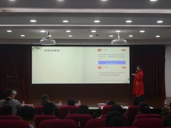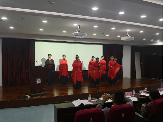 经过前期评比推荐,共有19支团队入围现场评比。评比根据专家评分、学院团委书记评分、学生代表评分,从活动准备、主题重点、工作开展、实践收获以及宣传报道等方面进行考评。汇报人刘亚辉老师身着传统汉服,向现场评委和观众展示了此次活动的风采与成果,并与同学们一起吟诵了《诗经·木瓜》。经过激烈的比拼,最终成人在线
