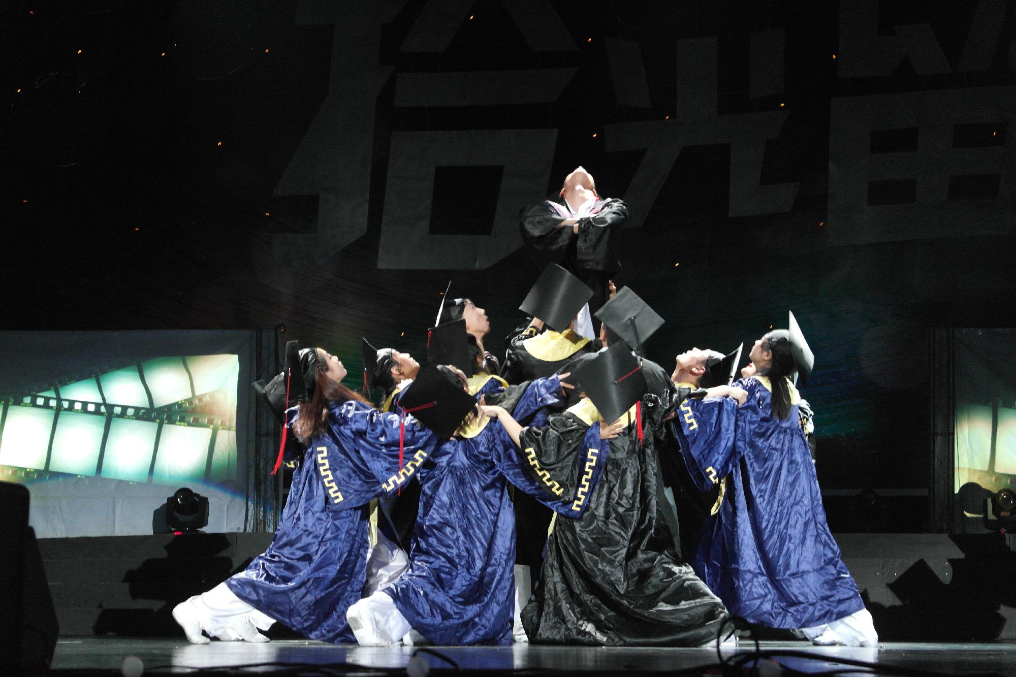 踏着动感的节拍,闪着耀眼的灯光,在一场欢快的开场舞中,第一章悄然拉开序幕。四首歌曲联唱,深情动听,歌曲萦绕在耳边,任每一个场景在记忆里回放,任每个声音在脑海中回响。在舞蹈《绿之梦》中,我们在曼妙的舞姿中欣赏到了仲夏夜之景中那般流动的娴静。别出心裁的哑剧《大话图书馆》,演员们的神态动作在舞台上表现地淋漓尽致,创意独特又不失诙谐,赢得了场下阵阵掌声与欢呼声。在愉快的气氛中,一场人文学院男神、女神、男闺蜜、学霸们的特别的颁奖典礼多人眼球,每个毕业生都青春焕发。