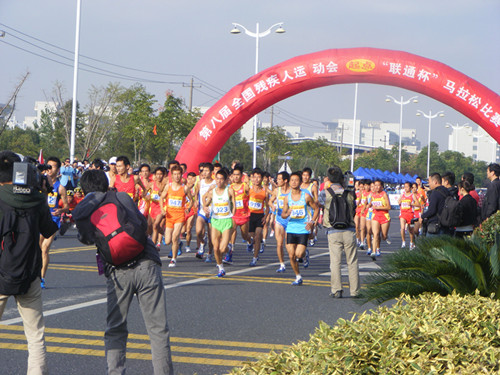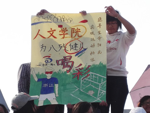 值我校承办中华人民共和国第八届残疾人运动会盲人足球赛落下帷幕之际,10月19日早八点,第八届残疾人运动会马拉松比赛在我校正式起跑,人文学院(马克思主义学院)组织了全院学生到场观看比赛,为残疾人运动员们加油助威。