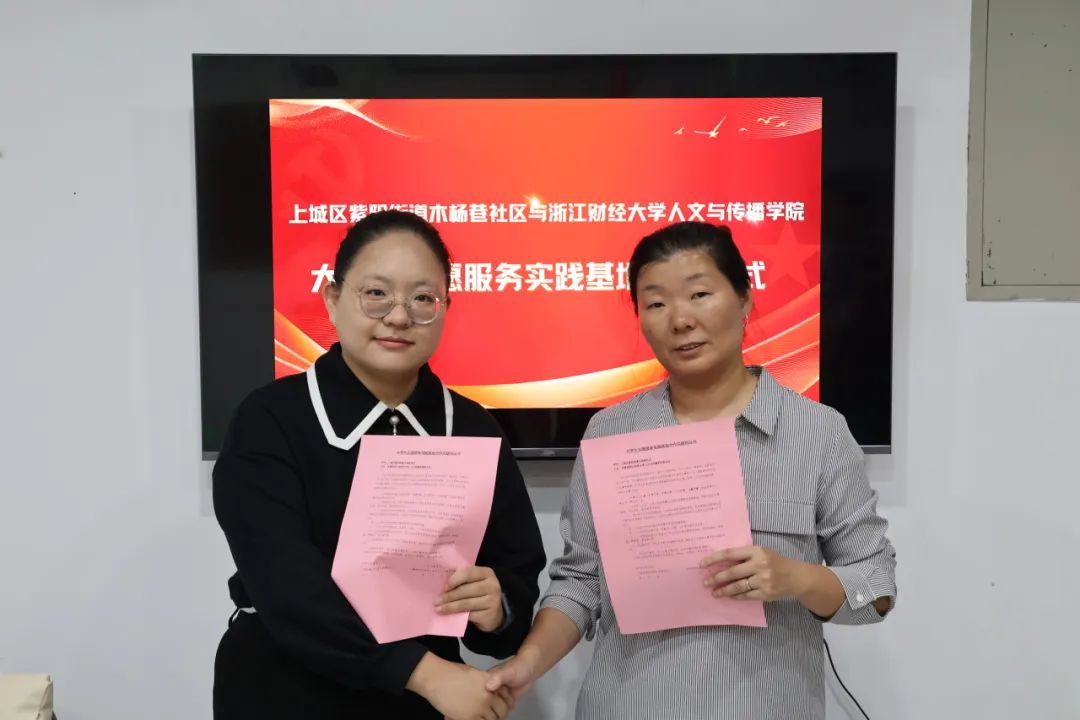 团委在上城区紫阳街道木场巷社区建立志愿服务实践基地。上城区紫阳街道木场巷社区书记陈岚、学院团委书记李惠惠和相关学生代表参加了签约仪式。团委书记李惠惠代表学院团委发言,并与上城区紫阳街道木场巷社区书记陈岚在志愿服务基地共建协议书上签字。