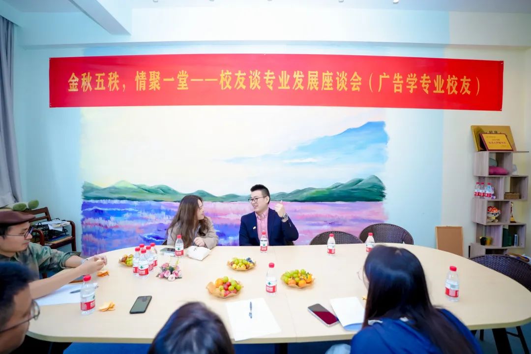 学子在各领域展现着卓越的才华。学院楼内举办了专业发展座谈会,特邀多位杰出校友与专业教师共聚一堂,探讨各专业的现状与未来。会议下设三个分会场,汉语言文学专业、广告学专业、数字媒体艺术与网络与新媒体专业,旨在深度交流与讨论。