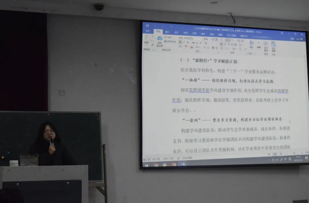 团委在A101召开了2024-2025 学年第二学期学生干部学风建设大会。本次会议由学院团委书记李惠惠老师主持,团委学生会全体成员与各班主要班委出席本次会议。