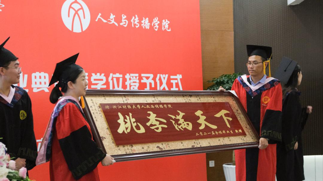 为了感谢学院四年以来的精心培养,2021届全体毕业生满怀感恩之心,向学院赠送了题为“桃李满天下”的牌匾,作为他们送给成人在线