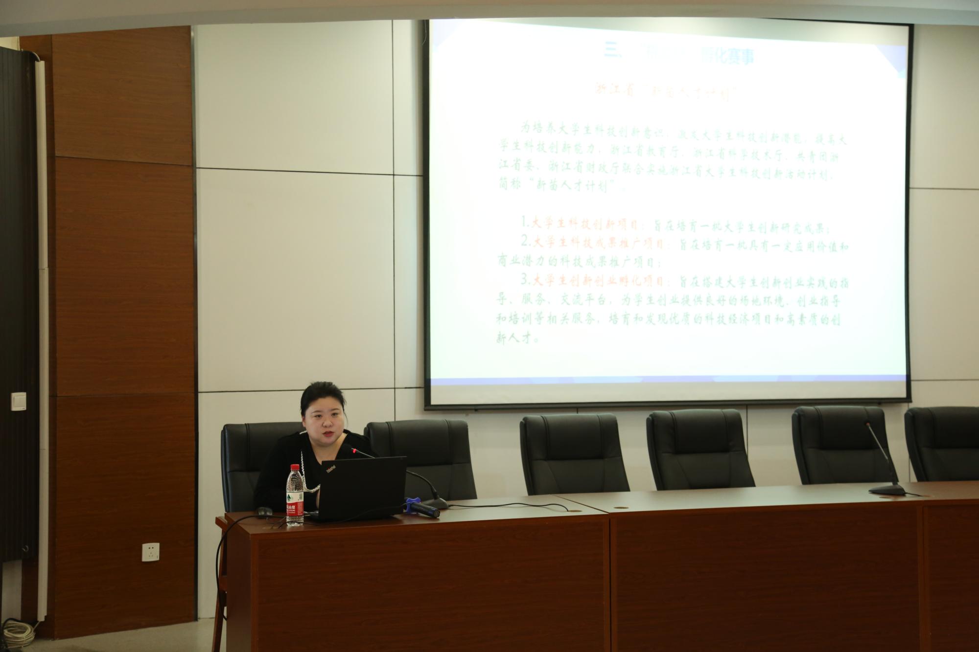 会议特邀创业学院副院长张淼,校团委副书记徐艳妍为主讲嘉宾。会上,张淼对互联网+创新创业大赛、浙江省大学生乡村振兴创意大赛进行了详细的介绍,并结合成人在线
